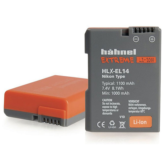 باتری Hahnel HLX-EL14 ساخت شرکت هنل میباشد. این باطری جدید HLX-E14 جایگزین باطری EN-EL14 نیکون شده است. از دیگر ویژگیهای این باطری به دوام بالا ، ضد ضربه (با استفاده از فناوری تزریق سیلیکون) ، کارایی بالا اشاره کرد. باطریهای لیتیوم-یون مانند دیگر باطریهای الکتروشیمیایی از دو الکترود و ماده الکترولیت تشکیل شده که معمولا الکترولیت آنها از نمک لیتیوم در یک حلال آلی ساخته شود. در هنگام شارژ باطری، لیتیوم فلزی موجود در الکترود مثبت به یون لیتیوم تبدیل میشود و یونهای لیتیوم که در الکترولیت قرار دارند، در بین لایههای کربن یا گرافیت ذخیره میشوند. در هنگام تخلیه نیز همین انرژی الکتریکی آزاد میشود. این واکنش الکتروشیمیایی ولتاژ تقریبی ۳ ولت را تولید مینماید.