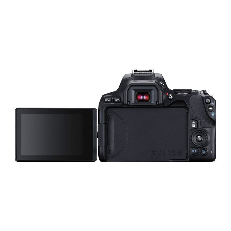 با وجود طراحی کوچک، پشت این دوربین صفحه نمایش لمسی بزرگ 3 اینچی دیده می شود که می تواند در تغییر دادن تنظیمات یا تعیین نقطه ی فوکوس کار شما را راحت کند. صفحه نمایش این دوربین قابلیت چرخش دارد و می توانید برای عکاسی از زوایای بالا یا پایین نیز از آن استفاده کنید. دوربین کانن EOS 250D دارای سیستم بیسیم Wi-Fi است که می توانید برای انتقال عکس به موبایل یا پرینتر از آن استفاده کنید، همچنین Bluetooth این دوربین به شما اجازه می دهد تا بتوانید با استفاده از برنامه ی مخصوص بر روی موبایل خود، دوربین را کنترل کنید.