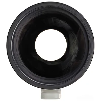 | لنز Sony FE 400–800 mm f/6.3–8 G OSS | بدنه اصلی لنز با درپوشهای جلو و عقب نصبشده |