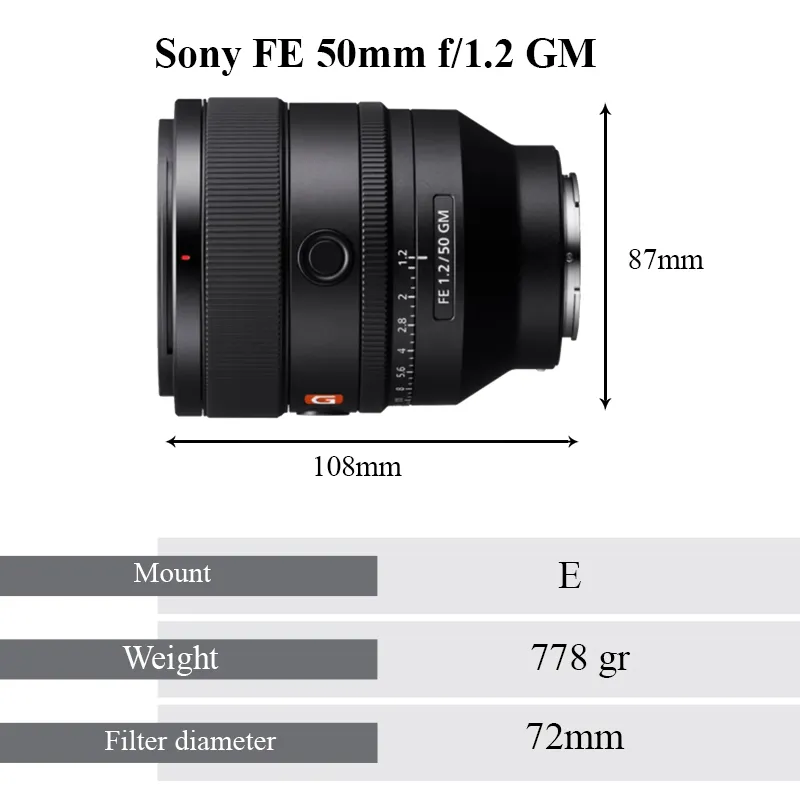 | بدنه لنز | Sony FE 50mm f/1.2 GM |